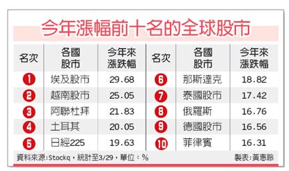 邊境股市今年走勢大反攻,全球股市今年漲幅前5名全屬於邊境股市,例如埃及、越南、土耳其、杜拜等,漲幅都逾2成,法人說,相關股市即使上漲2成,股價仍在相對便宜的水位,後市持續看好,僅要注意相關市場特色是波動較大。